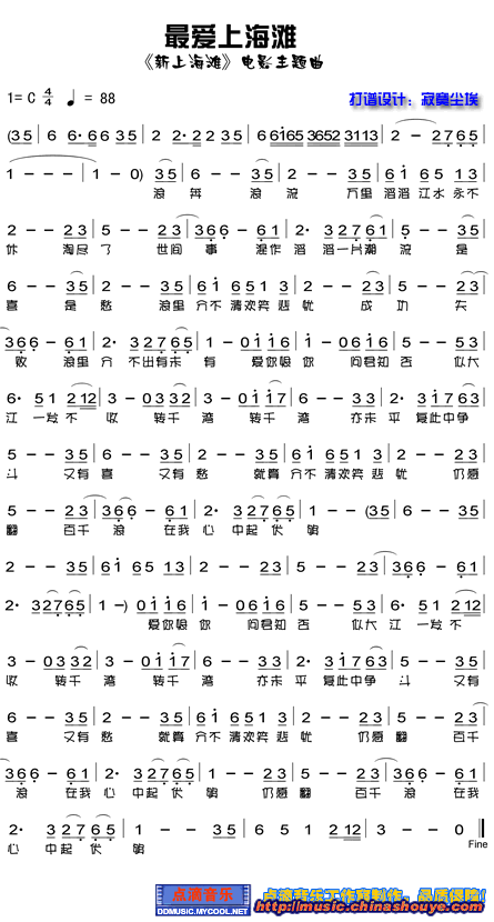 最爱上海滩(影视简谱 歌谱 歌曲简谱 合唱简谱 民歌简谱 影视简谱)