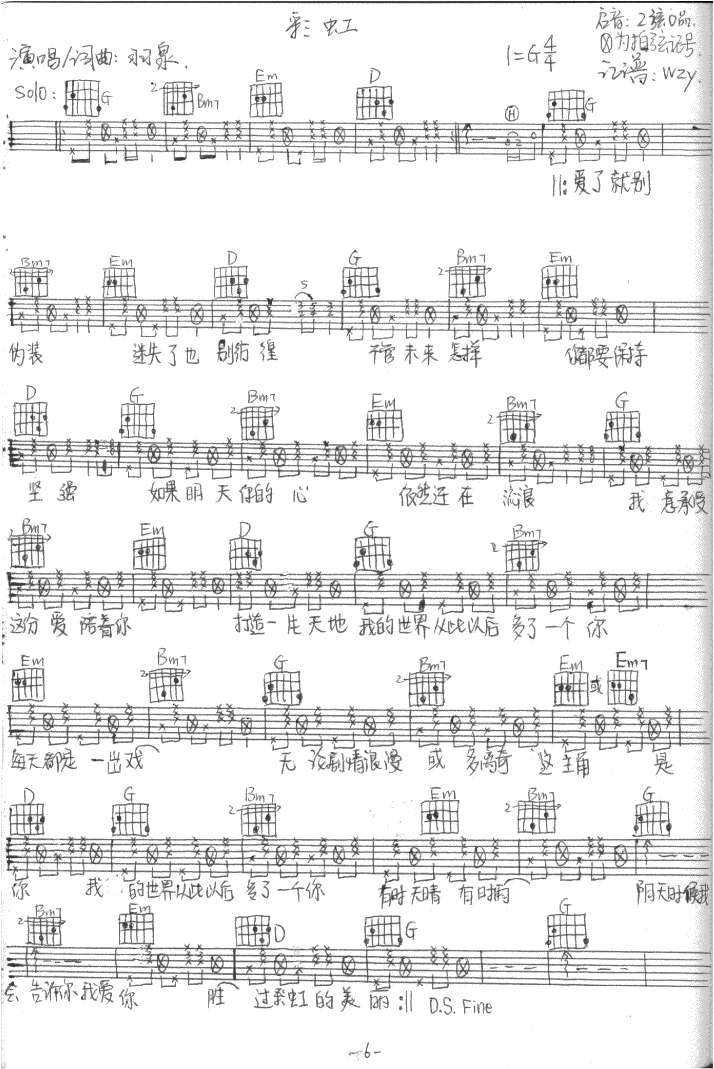 彩虹-羽泉(吉他谱 吉他曲谱 吉他六线谱 吉他歌谱 吉它谱 影视吉他谱)