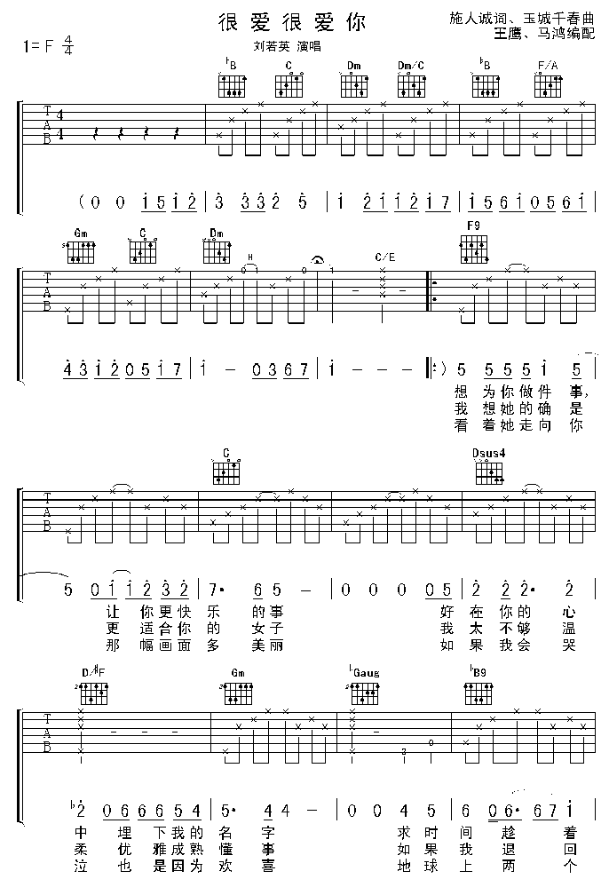 >> 很爱很爱你-刘若英(吉他谱)