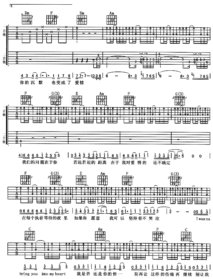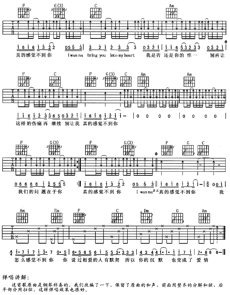 感觉不到你-羽泉(吉他谱 吉他曲谱 吉他六线谱 吉他歌谱 吉它谱 影视吉他谱)