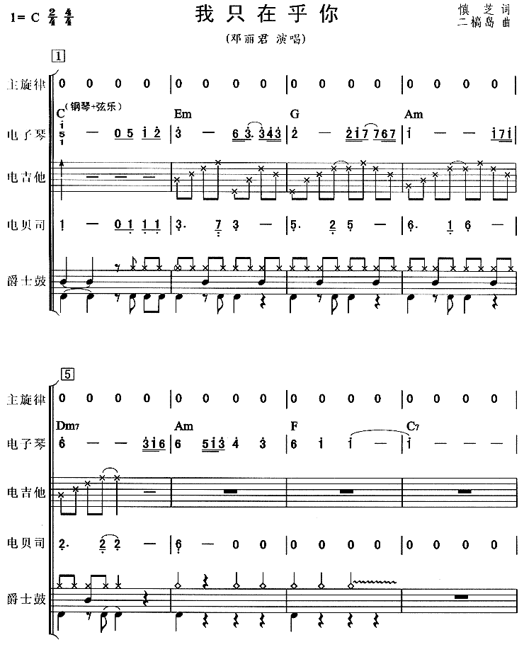 我只在乎你-邓丽君(乐队谱)