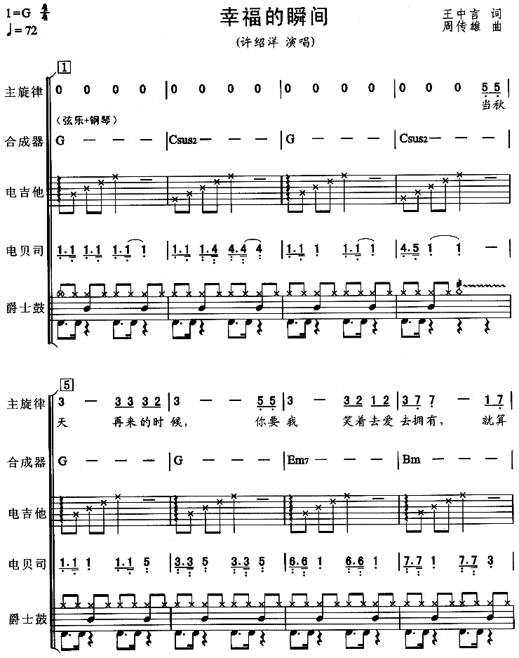 >> 幸福的瞬间-许绍洋(乐队谱)