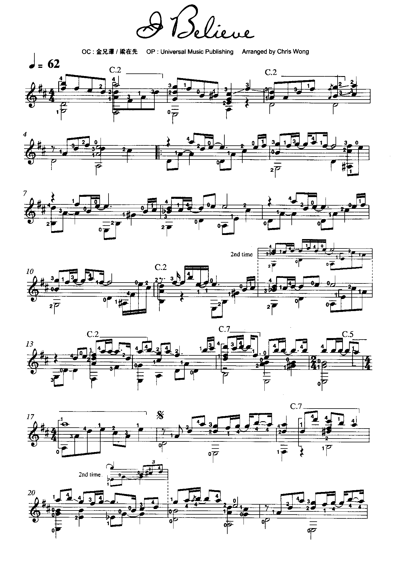 >> I Believe-《我的野蛮女友》主题曲(古典吉他)