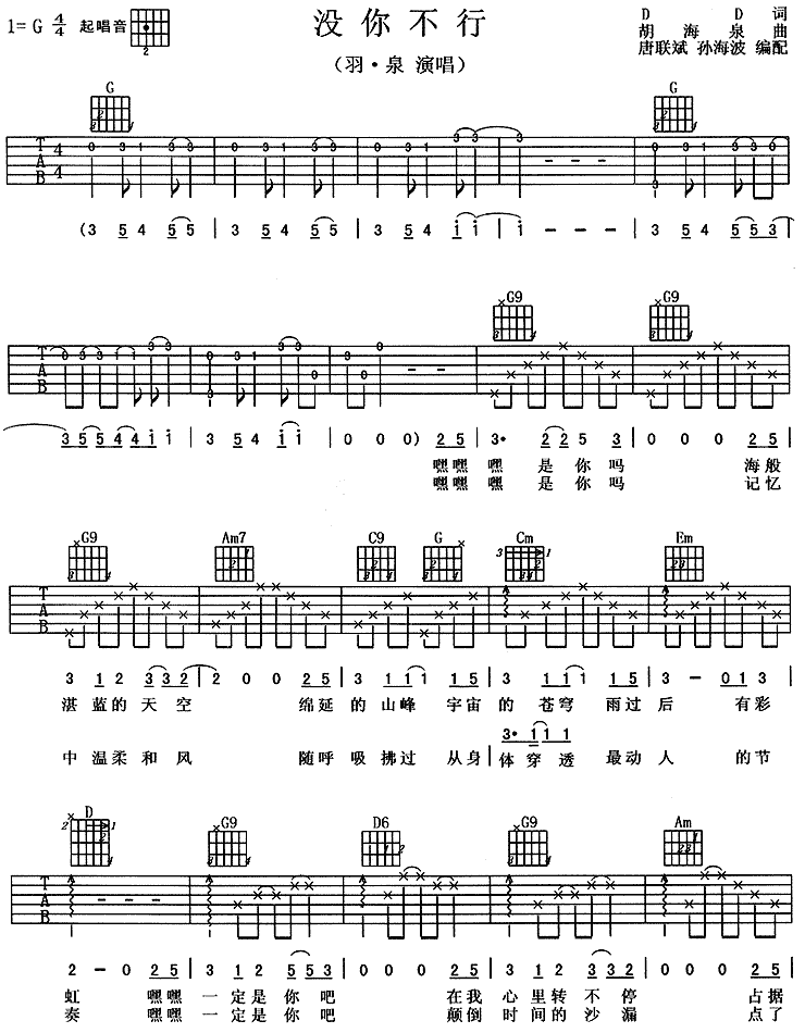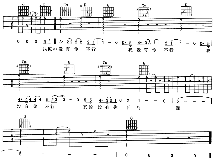 没你不行-羽泉(吉他谱 吉他曲谱 吉他六线谱 吉他歌谱 吉它谱 影视吉他谱)