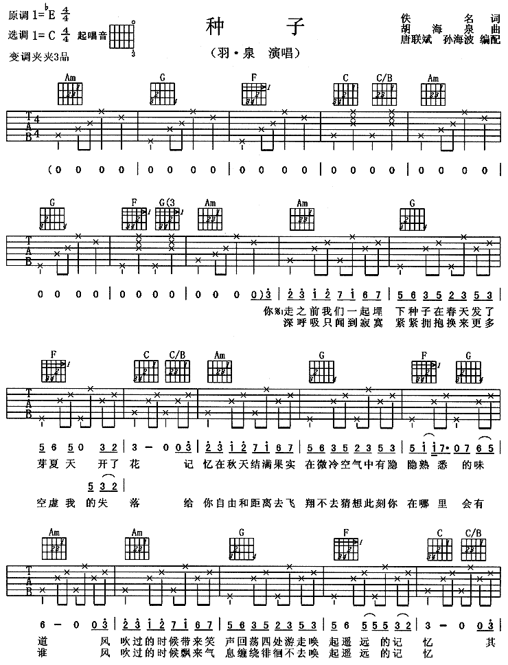 种子-羽泉(吉他谱)