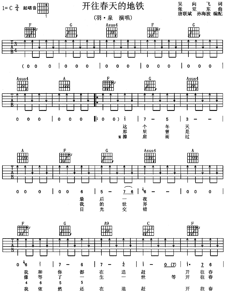 >> 开往春天的地铁-羽泉(吉他谱)