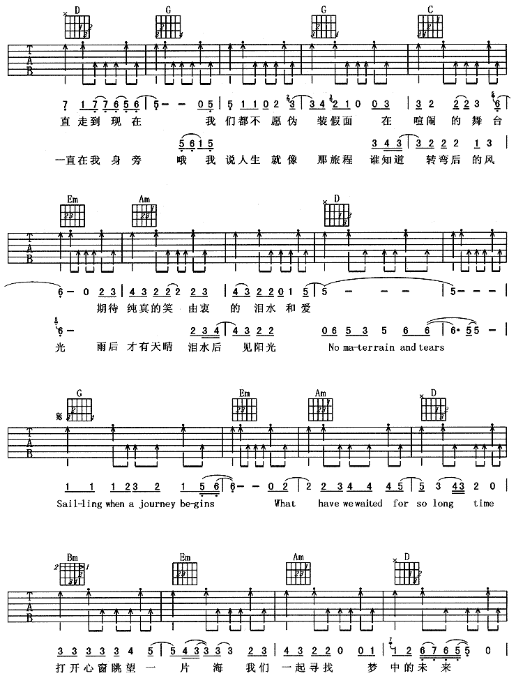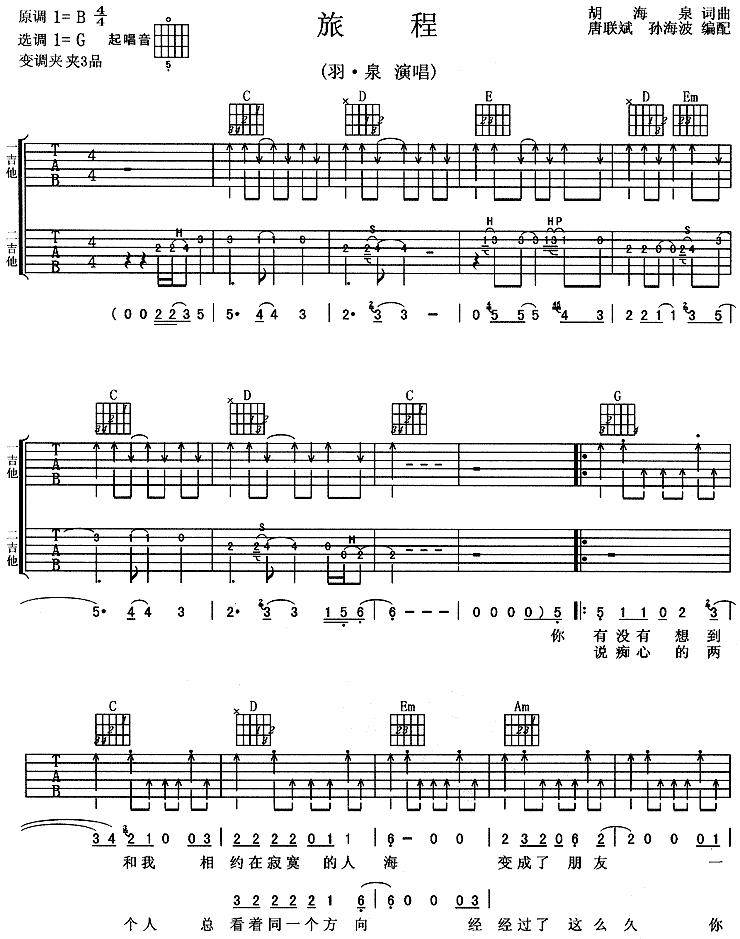旅程-羽泉(吉他谱 吉他曲谱 吉他六线谱 吉他歌谱 吉它谱 影视吉他谱)
