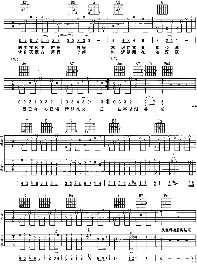 >> 爱一回伤一回-游鸿明(吉他谱)