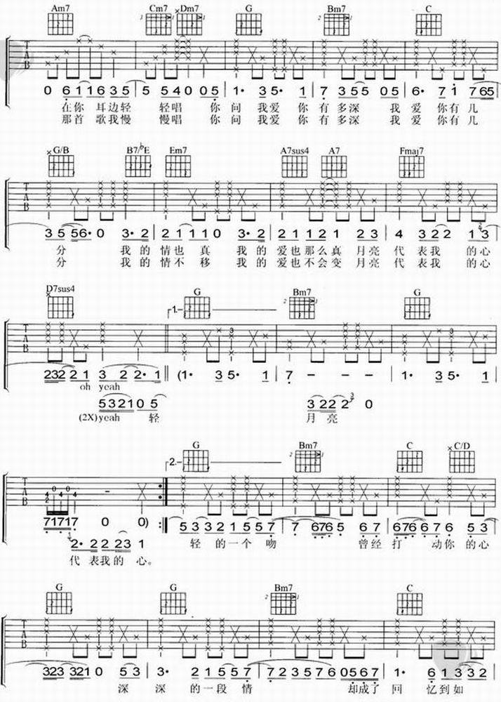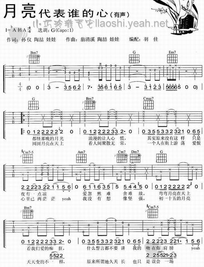 >> 月亮代表谁的心-陶喆(吉他谱)