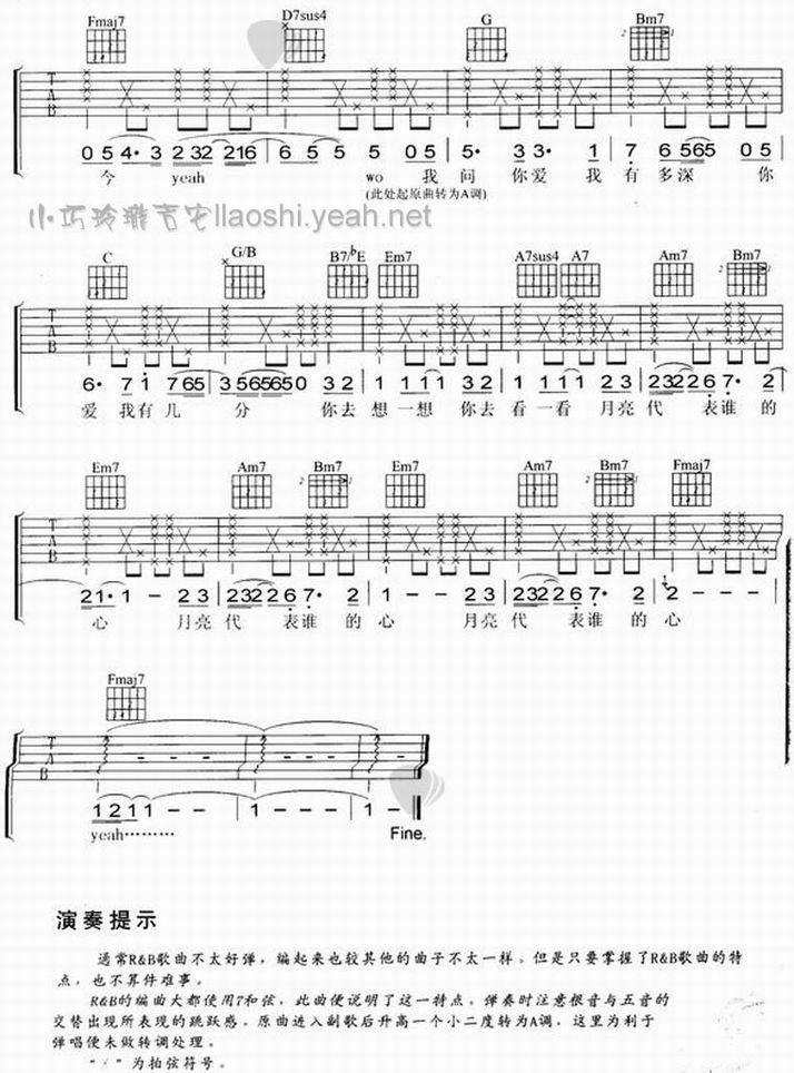 月亮代表谁的心-陶喆(吉他谱)