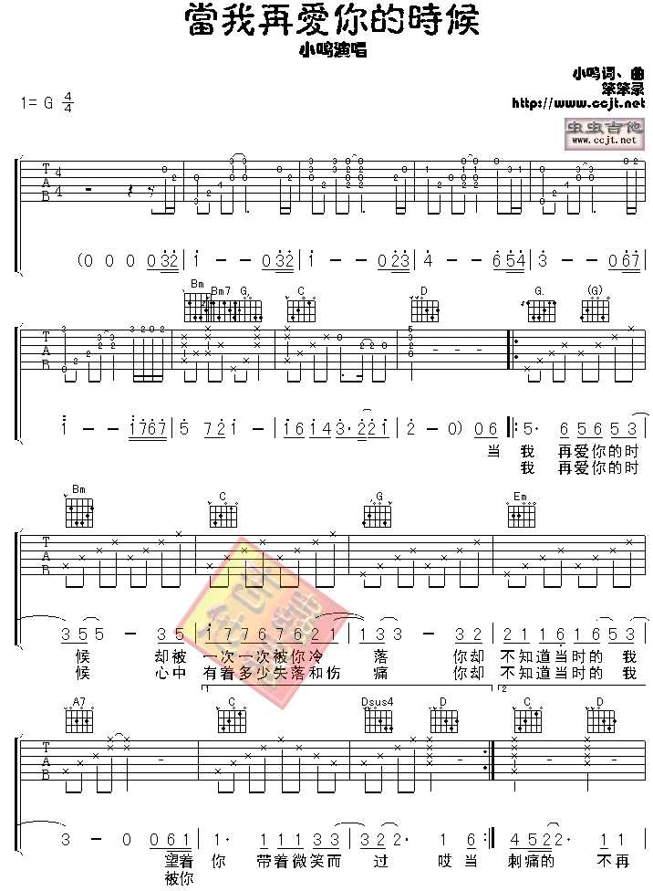 >> 当我再爱你的时候-小鸣(虫虫版)(吉他谱)