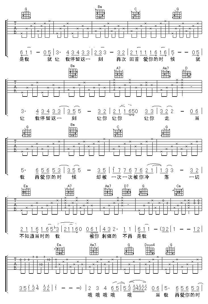 当我再爱你的时候-小鸣(虫虫版)(吉他谱)