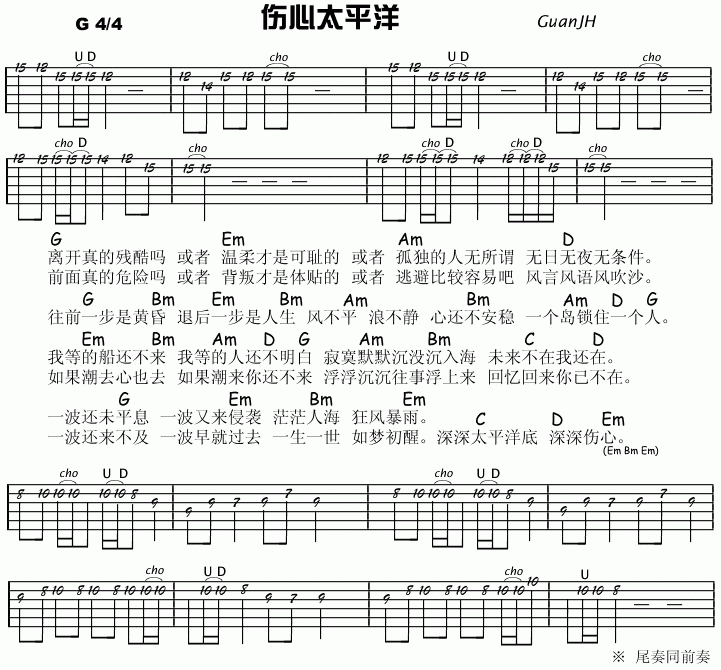 天生注定-任贤齐 杨千嬅(吉他谱)