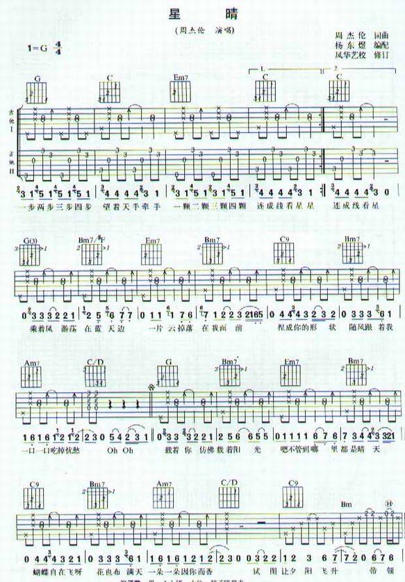 雨下一整晚-周杰伦(霏珑版吉他谱)