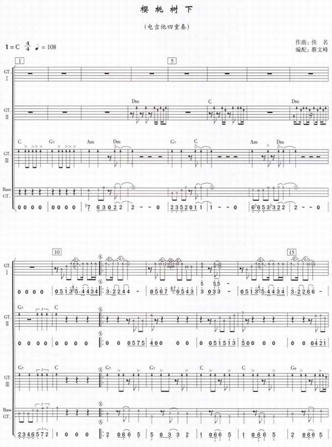 >> 樱桃树下-吉他四重奏