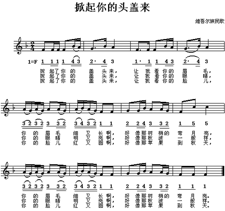 >> 掀起你的盖头来-中国民歌(简谱)