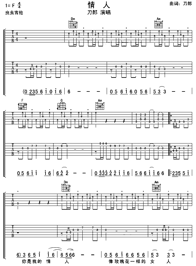 >> 情人-刀郎(吉他谱_虫虫版)