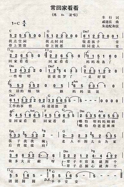 >> 常回家看看-陈红(简谱)