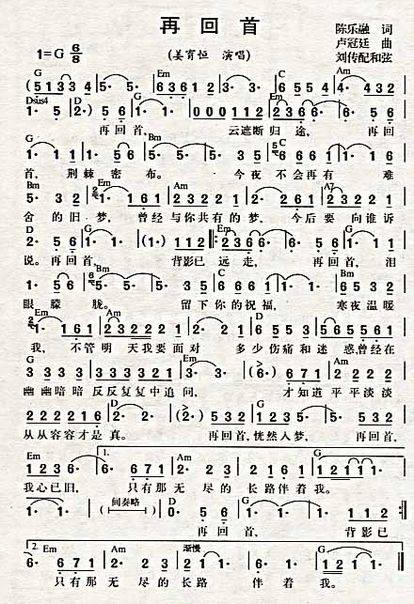 >> 再回首-姜育恒(简谱)