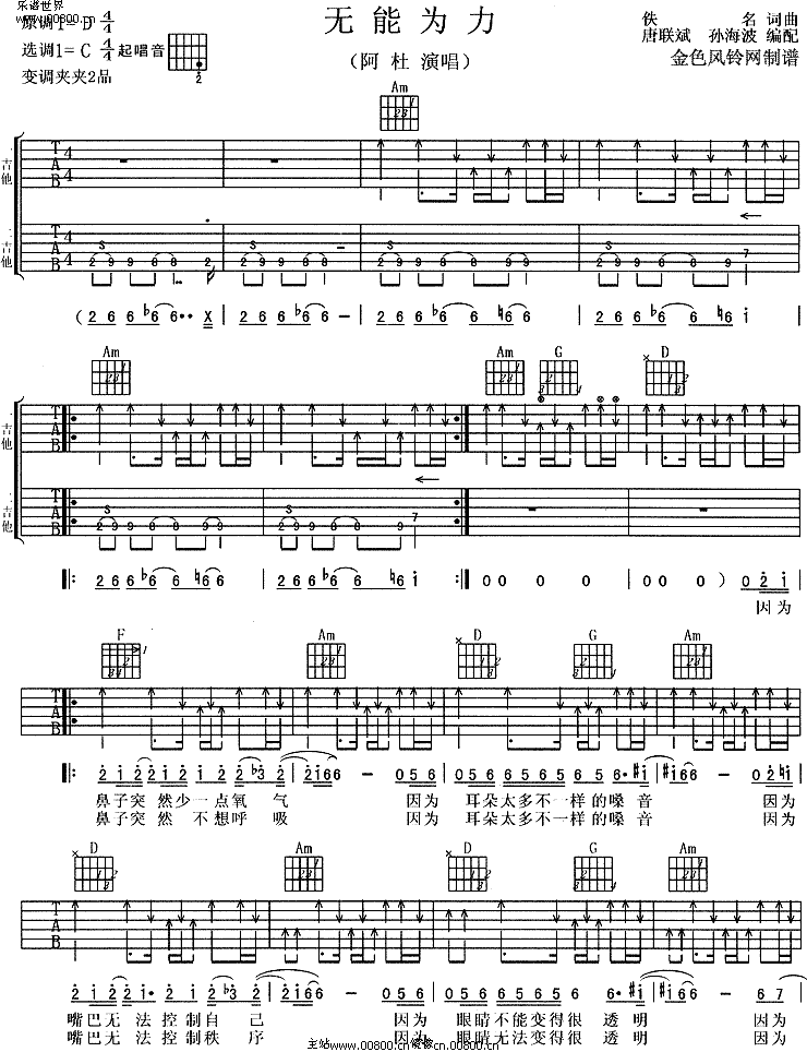 >> 无能为力-阿杜(吉他谱)
