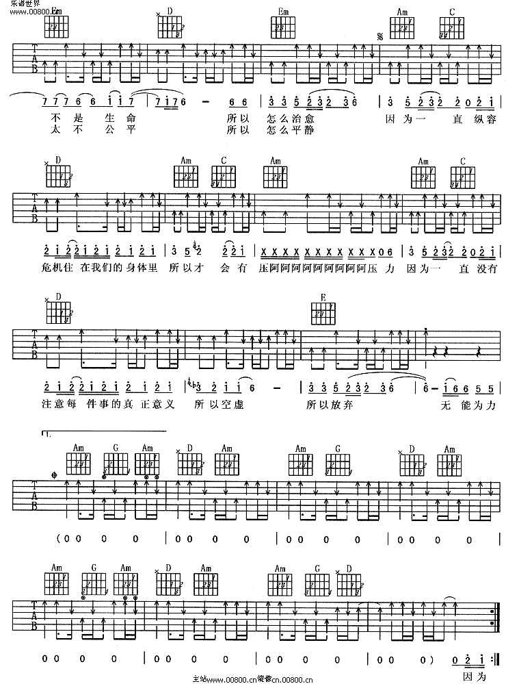 无能为力-阿杜(吉他谱)