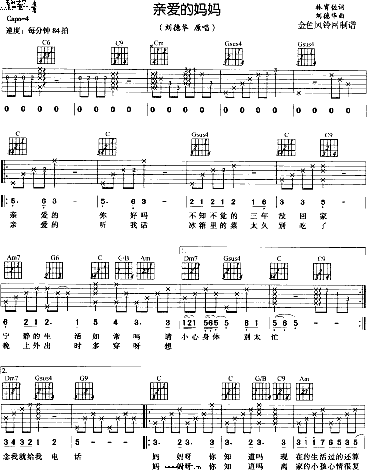 >> 亲爱的妈妈-刘德华(吉他谱)