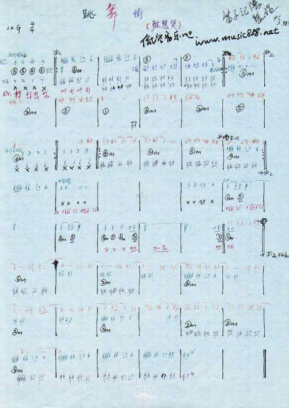 跳舞街-陈慧娴(乐队伴奏谱 电声乐队谱 乐队总谱 电声乐队演奏谱 贝司谱 鼓谱 键盘谱 吉它solo谱)