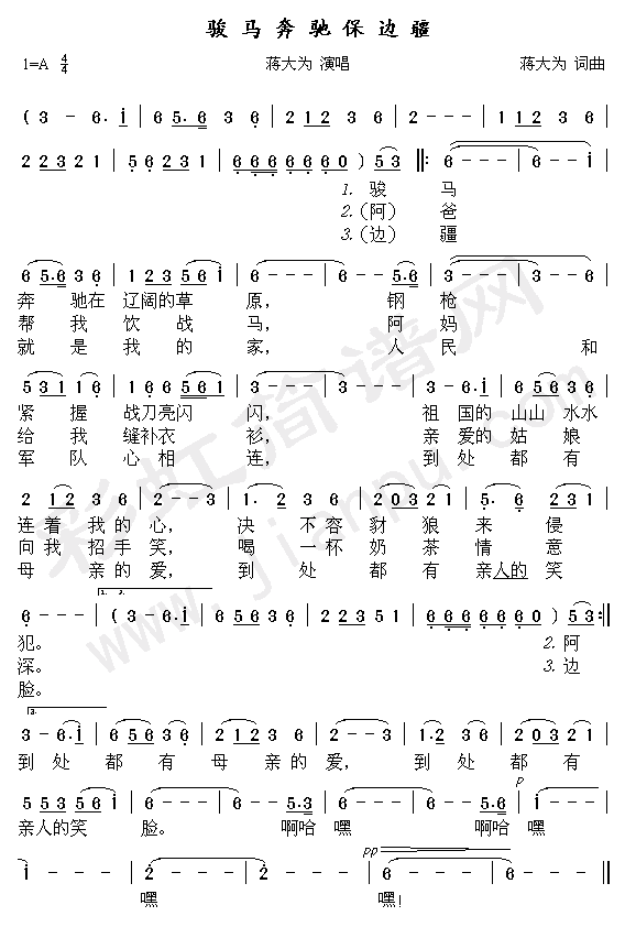 骏马奔驰保边疆-蒋大为(简谱)