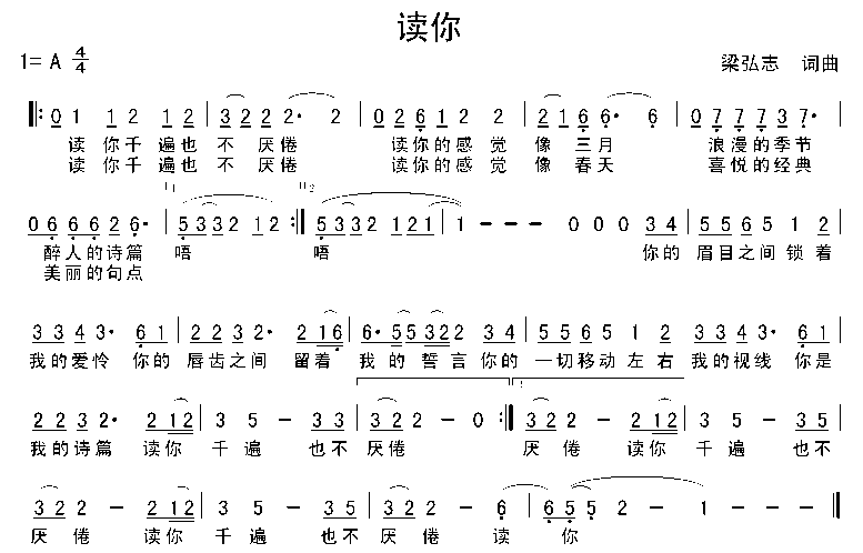 >> 读你-费翔(简谱)
