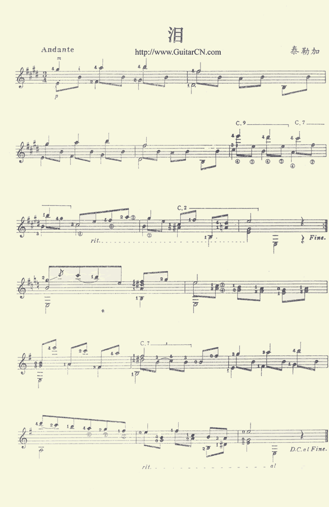 泪-古典吉他(吉他曲谱)