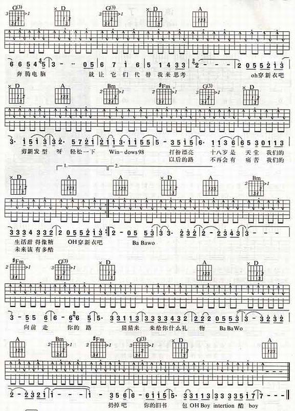 New Boy-朴树(吉他谱)