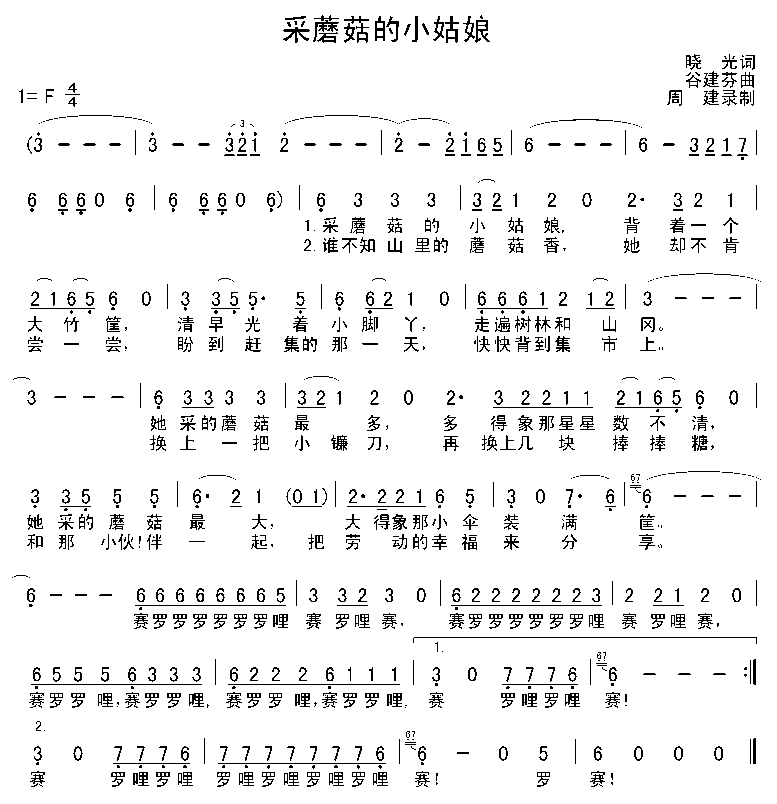 采蘑菇的小姑娘-少儿歌曲(简谱)