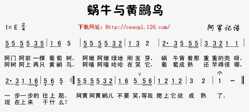 蜗牛与黄鹂鸟-少儿歌曲(简谱)