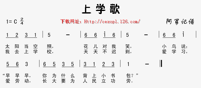 >> 上学歌-少儿歌曲(简谱)