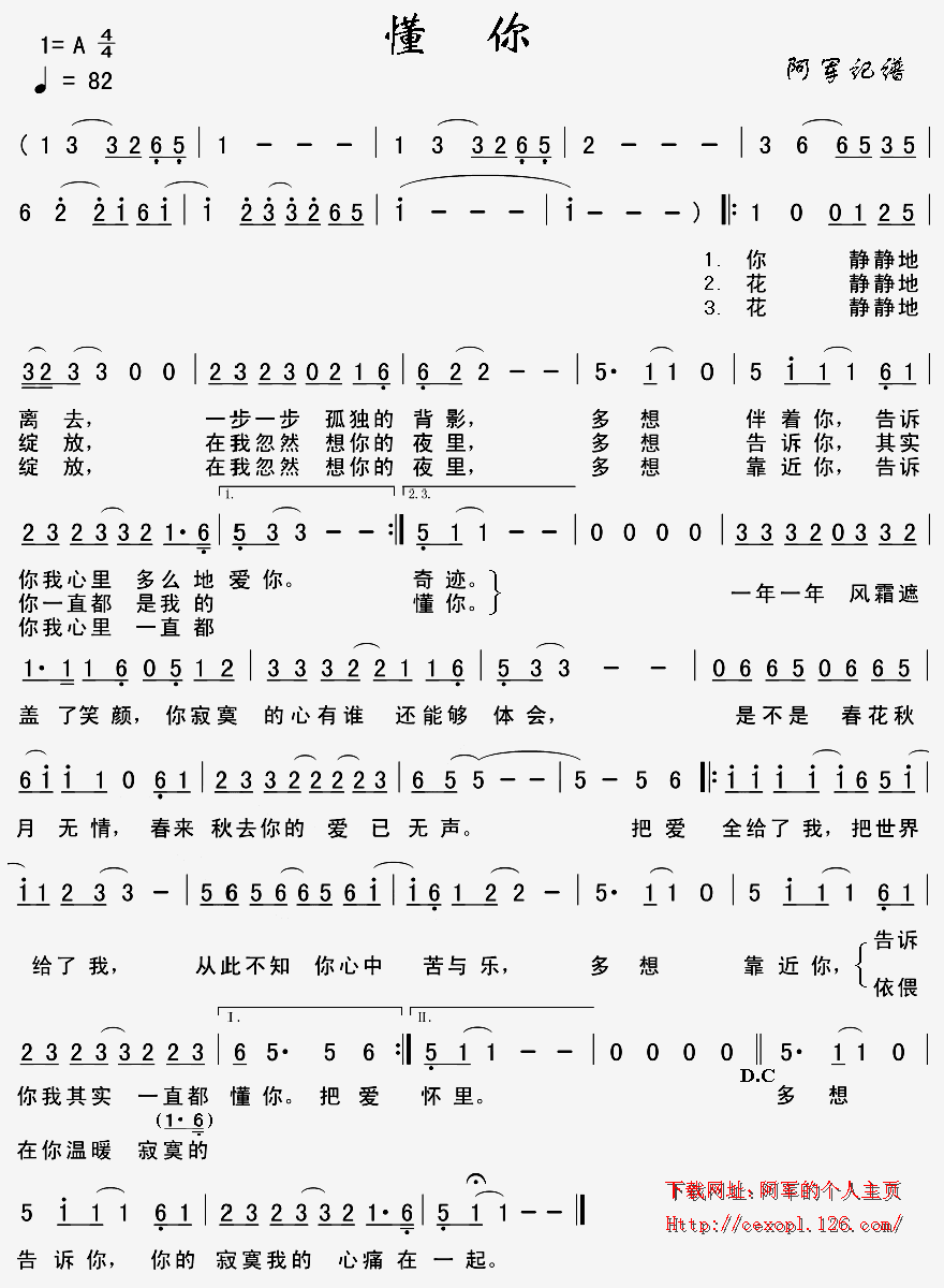 >> 懂你-满文军(简谱)