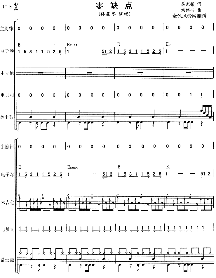 >> 零缺点-孙燕姿(乐队)