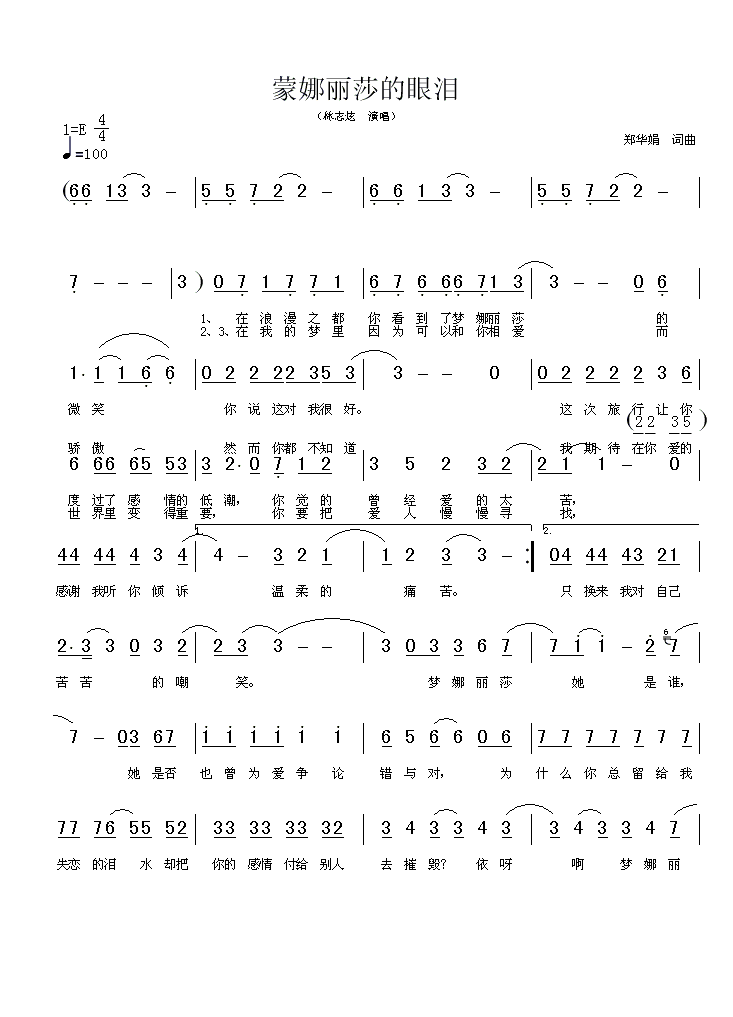 >> 蒙娜丽莎的眼泪-林志炫(简谱)
