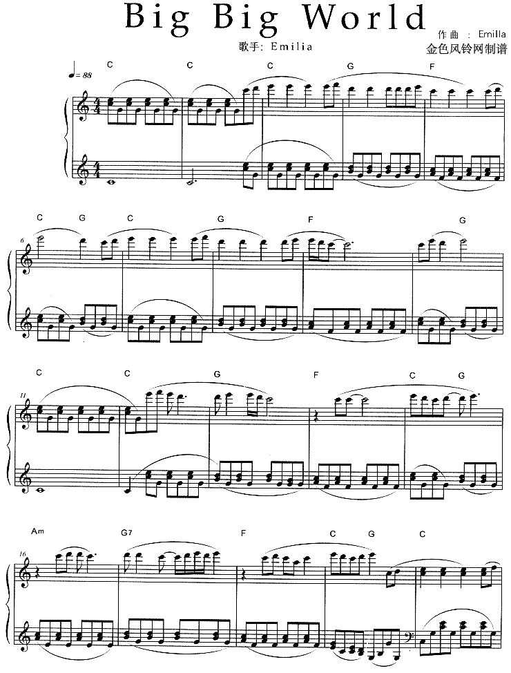 >> Big Big World-Emilia(线谱)