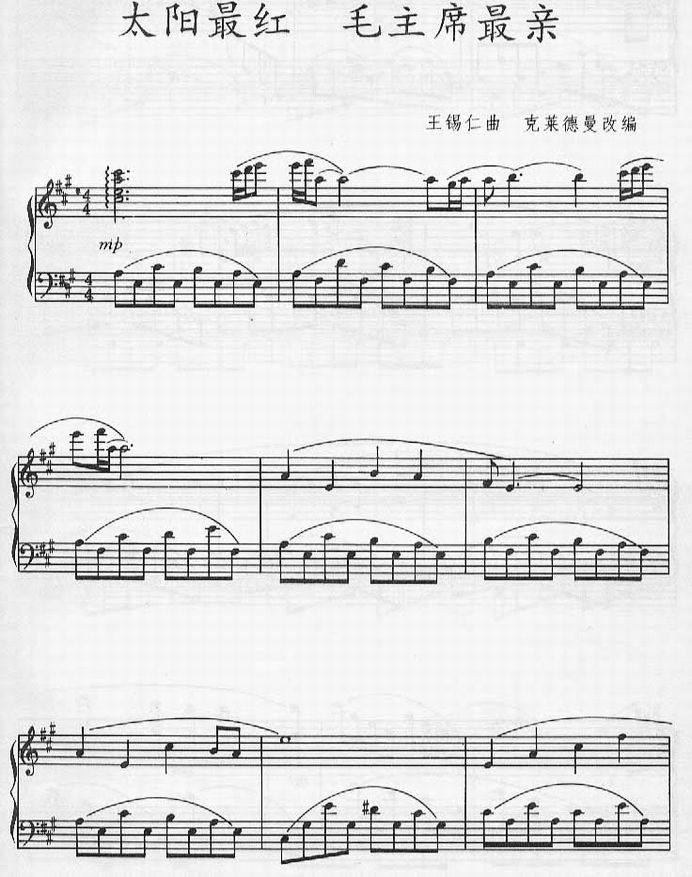 太阳最红毛主席最亲-理查德·克莱德曼(钢琴谱 钢琴五线谱 流行钢琴谱 钢琴伴奏谱 钢琴弹唱谱 钢琴谱下载)