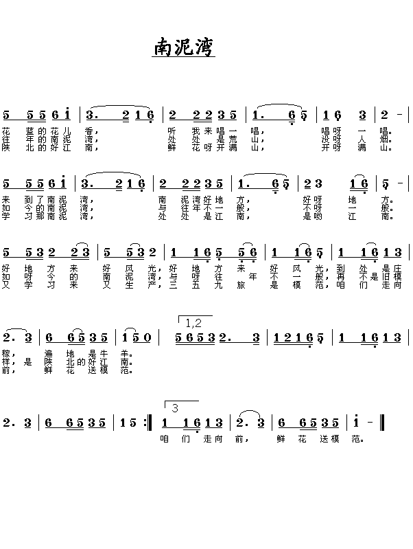 >> 南泥湾-郭兰英(简谱)