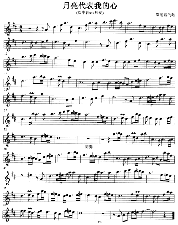 月亮代表我的心-邓丽君(萨克斯线谱)