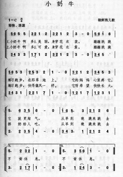 >> 小奶牛-少儿歌曲(简谱)