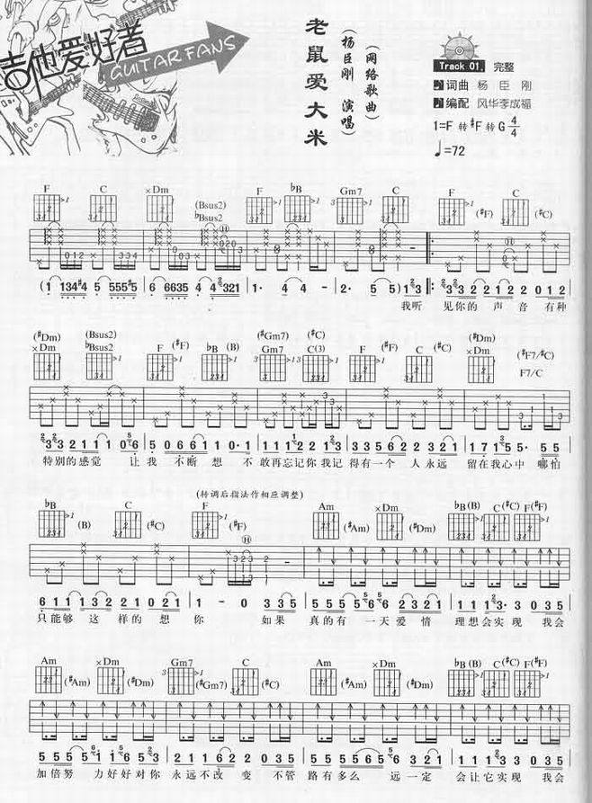 >> 老鼠爱大米-杨臣刚(风华版)(吉他谱)