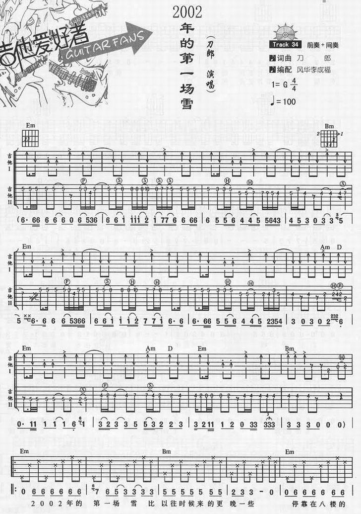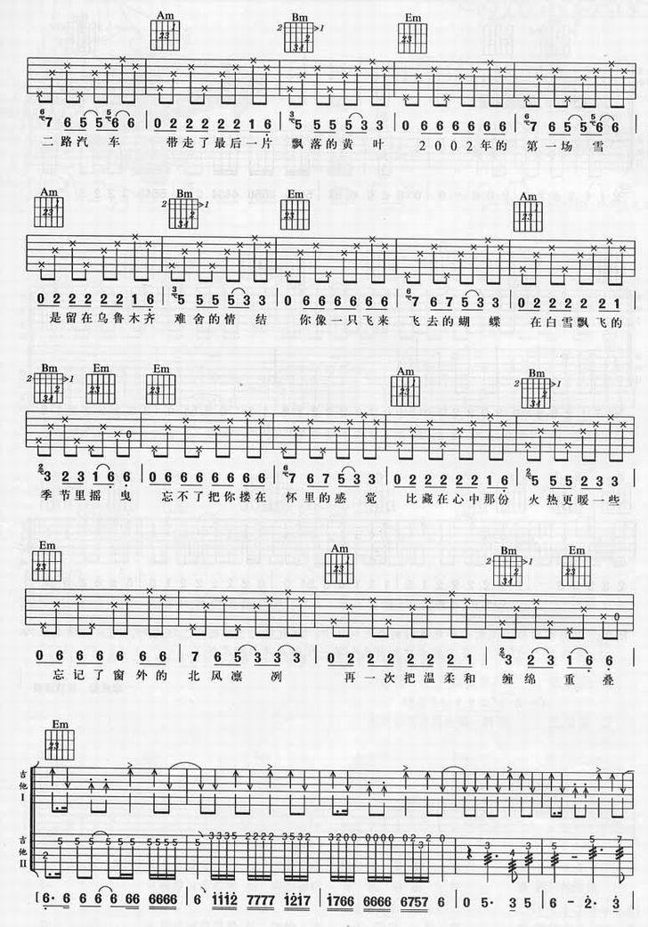 >> 2002年的第一场雪-刀郎(吉他谱风华版)