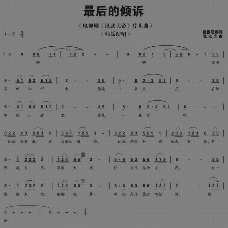 >> 最后的倾诉-韩磊《汉武大帝》片头曲(影视简谱)