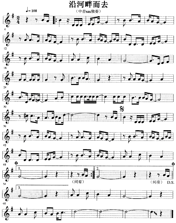 >> 沿河畔而去-萨克斯线谱