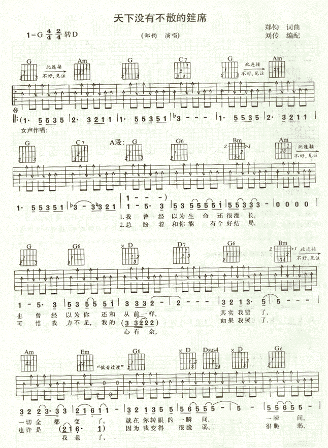 天下没有不散的筵席-郑钧(吉他谱)