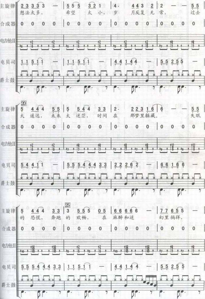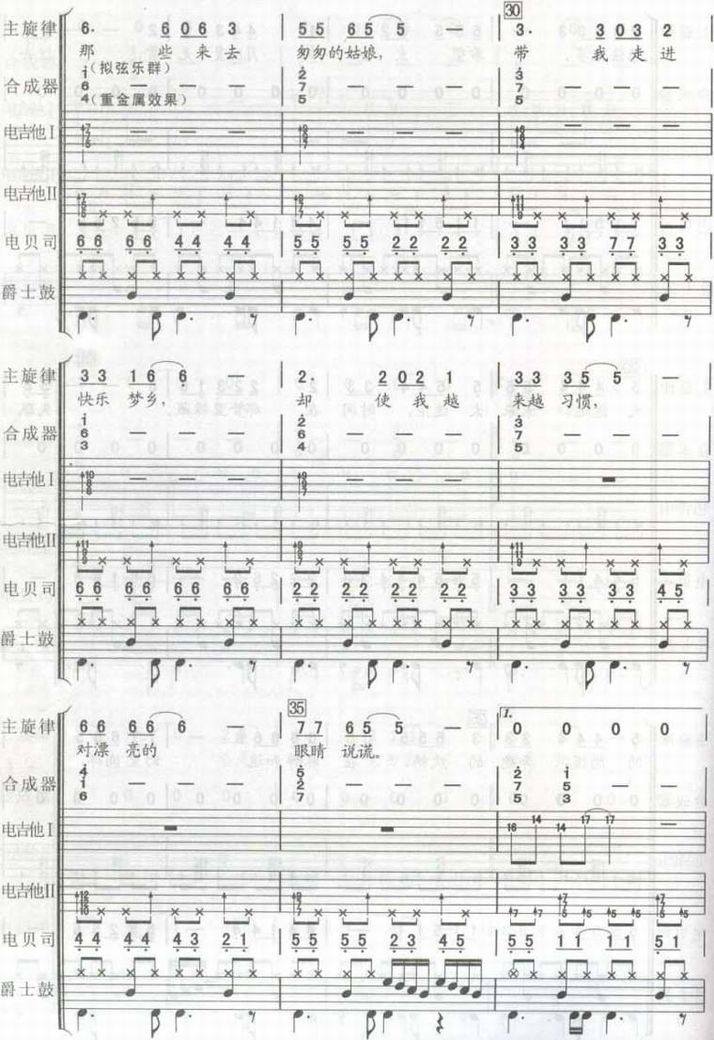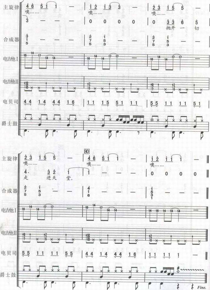 >> 天堂-唐朝乐队(总谱谱)