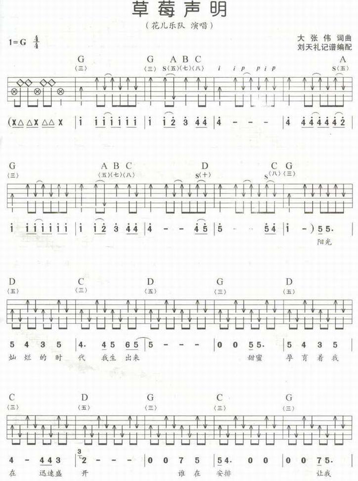 草莓声明-花儿乐队(吉他谱)