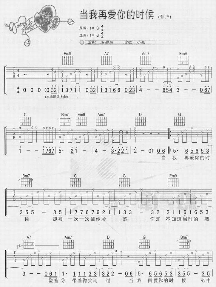 >> 当我再爱你的时候-小鸣(吉他谱)
